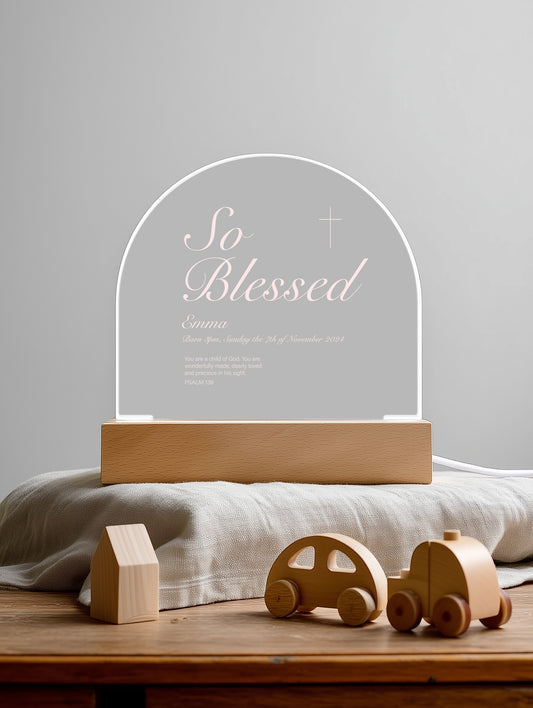 So Blessed - Child Name and Birth Details - Bedside Acrylic Dome Plaque Light